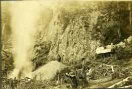 Postcard of the boiler explosion at the Drummond Mine in Westville, 1914