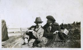 Photo taken January 1922, "Darling & Long Jim, oh you frozen eargl"