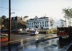 Photograph of the Front of the Court House as it burnt in September 1987