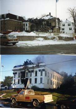 Photos from the Court house fire, 1987 and clean-up, winter 1988.