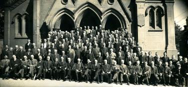 | Synod, Fort Massey Presbyterian Church Assembly of clergy in front of Fort Massey United, Halifax | Fort Massey United Church Halifax Nova Scotia Fort Massey Presbyterian Church clery assembly synod |
